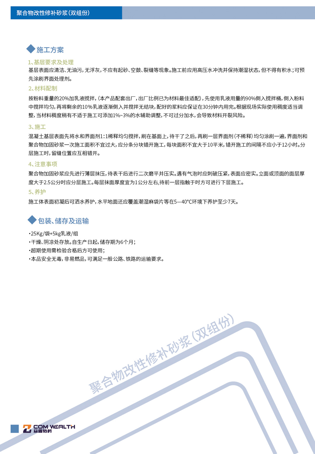 聚合物改性修補砂漿(雙組份)